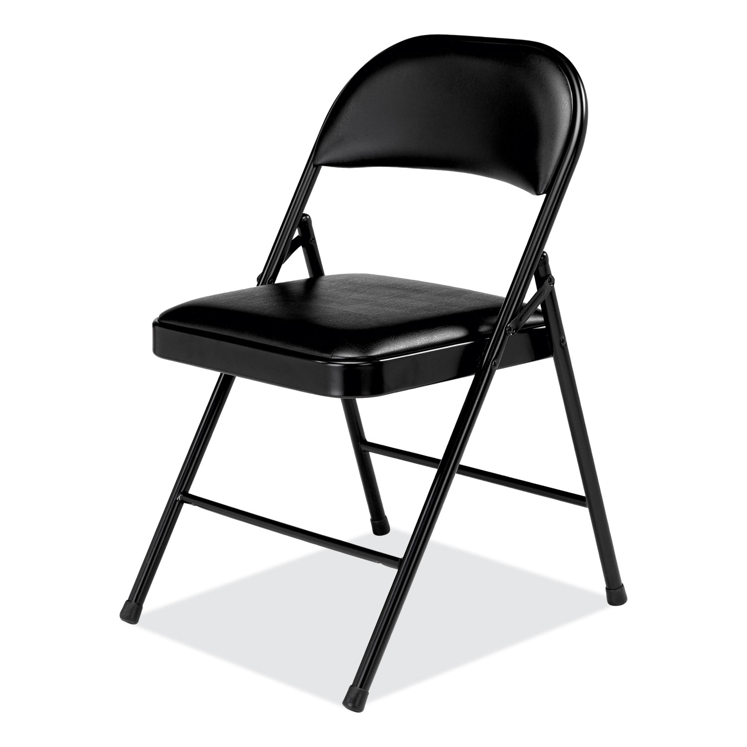 The BASICS Folding Chair with vinyl seat and back, features a 19-gauge steel frame and two tack welded leg braces. With a 250-lb weight capacity it is the perfectsolution for any commercial environment where a quality yet affordable product is called for. Recommended Application Area(s): Breakroom & Foodservice; Classroom & Training; Conference & Meeting; Guest/Reception & Lounge; Seat Color: Black; Back Color: Black; Color Family: Black.