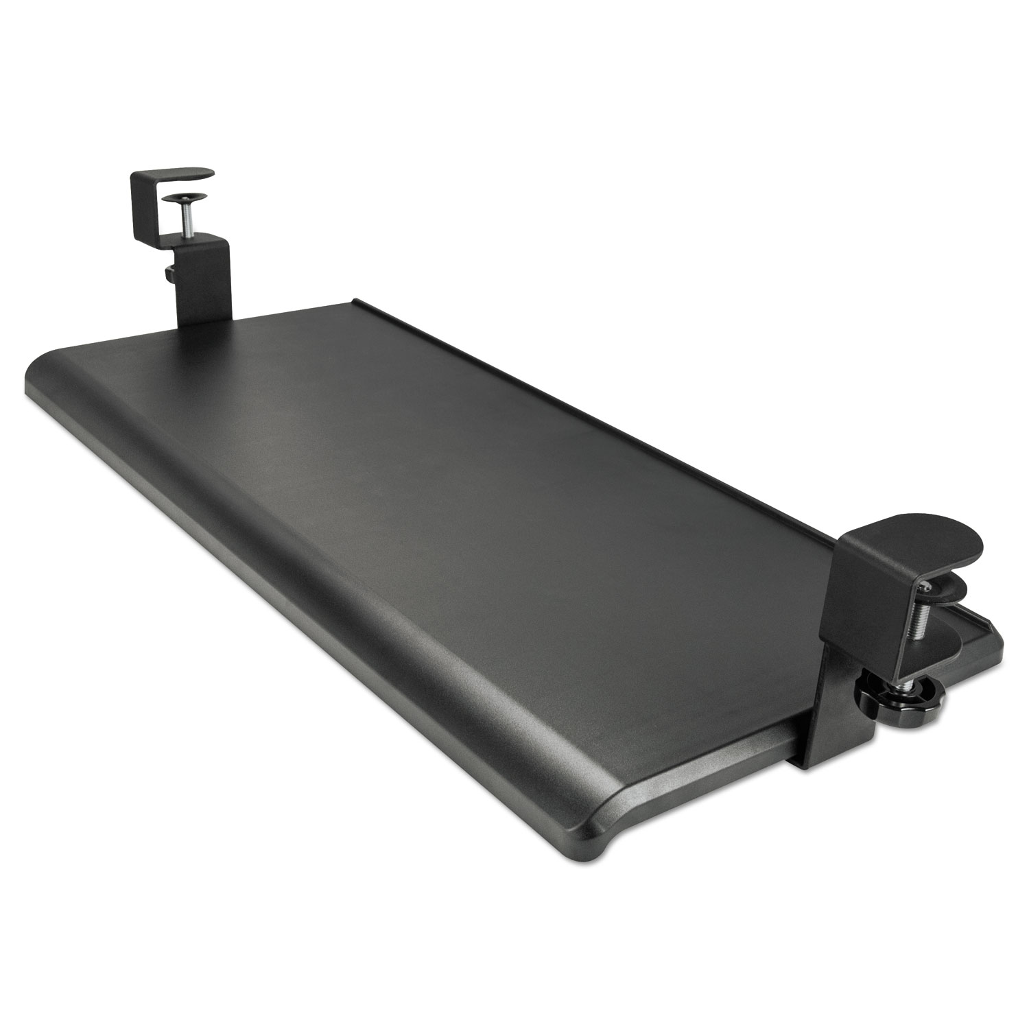 Smooth movement slide-out tray puts your keyboard right where you need it under your desk for improved ergonomics. Easy to install with sturdy metal clamps on any surface up to 1.5" thick. No screw installation does not damage the worksurface. Impact resistant plastic tray fits most standard and ergonomic keyboards. A great choice when under-desk crossbars, hardware or other obstructions make permanent mount keyboard trays impossible to install.