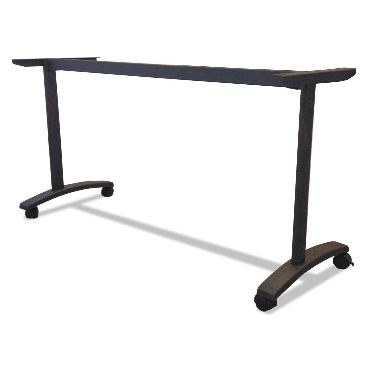 Durable, powder-coated steel T-leg table base resists chipping and scratching. Four locking casters for mobility or four glides for fixed usage. 29" high with top. Top and Base sold and shipped separately—ORDER BOTH.
