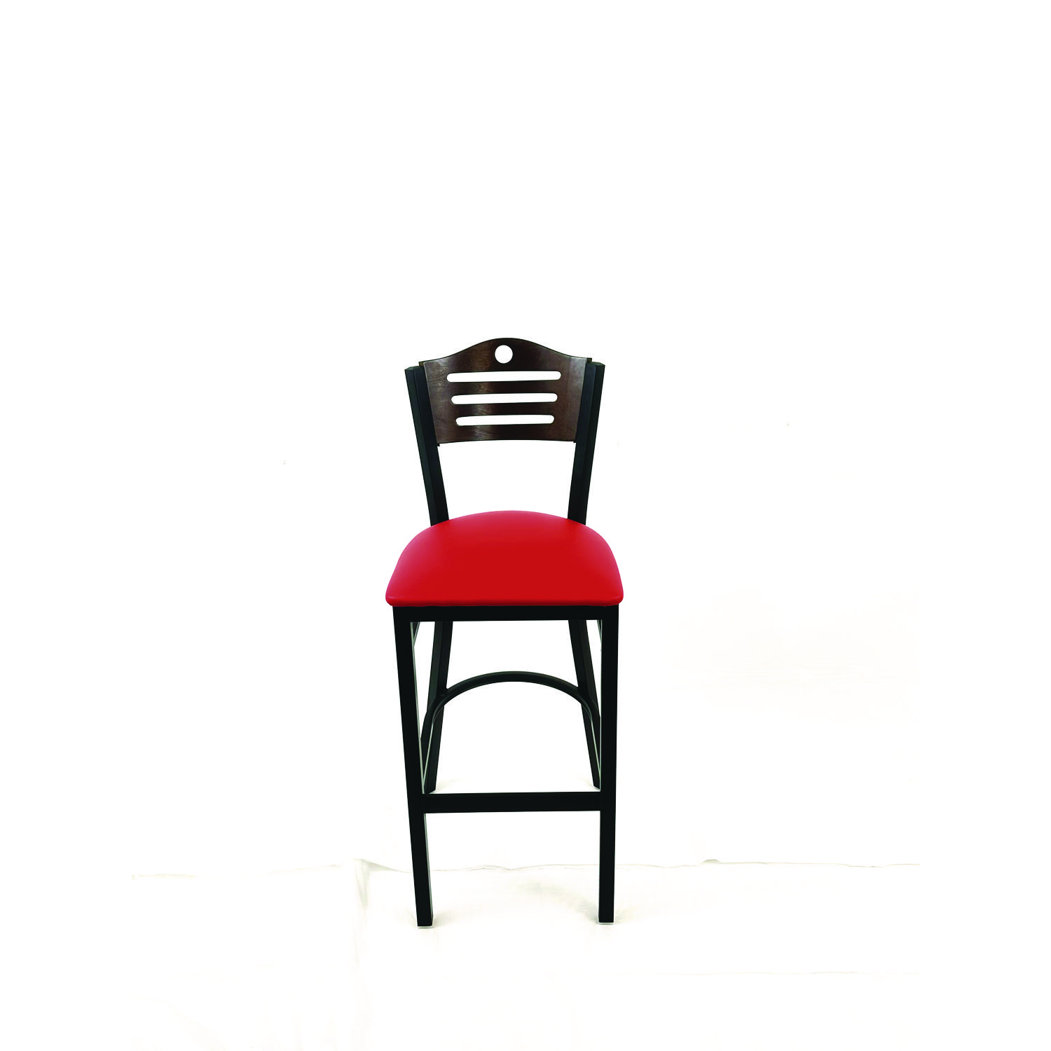 Introducing the perfect seating solution for your home or business-the Eagle Series metal framed barstool with vinyl seat pad. This sleek and modern design is built to provide maximum comfort and durability, all while adding a touch of style to your space. With a sturdy metal frame, this barstool is sure to stand up to even the busiest of environments. The frame is built to last, ensuring that you have a reliable seating option for years to come. The vinyl seat pad is not only comfortable, but also easy to clean and provides a soft and supportive surface that is perfect for extended use making it ideal for high-traffic areas. Whether you're using this barstool in your dining room, kitchen, or bar area, it's sure to impress and is the perfect addition to any indoor space. Recommended Application Area(s): Breakroom & Foodservice; Seat Color: Red; Back Color: Dark Walnut; Color Family: Red.