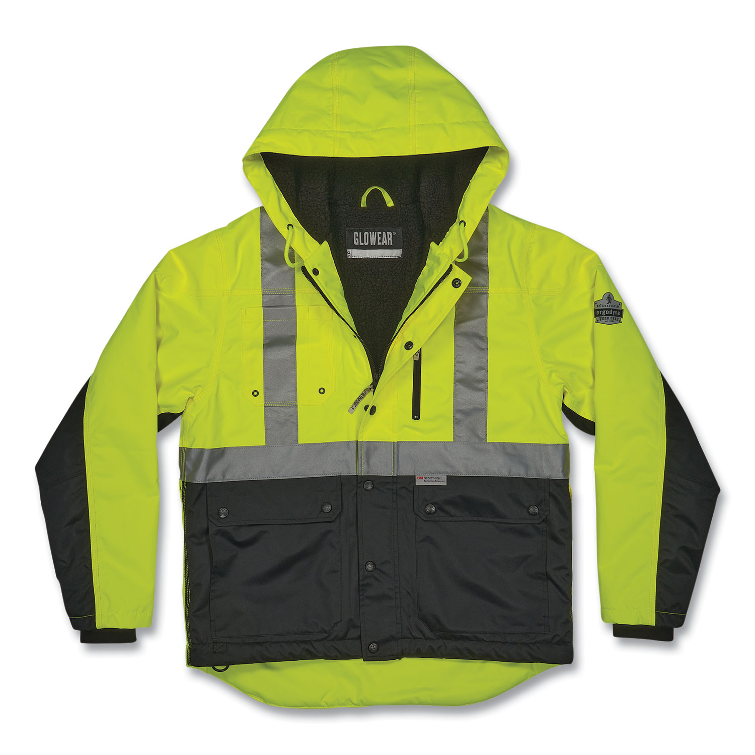 GloWear 8275 Class 2 Heavy-Duty Hi-Vis Workwear Sherpa Lined Jacket, 3X-Large, Lime, Ships in 1-3 Business Days1