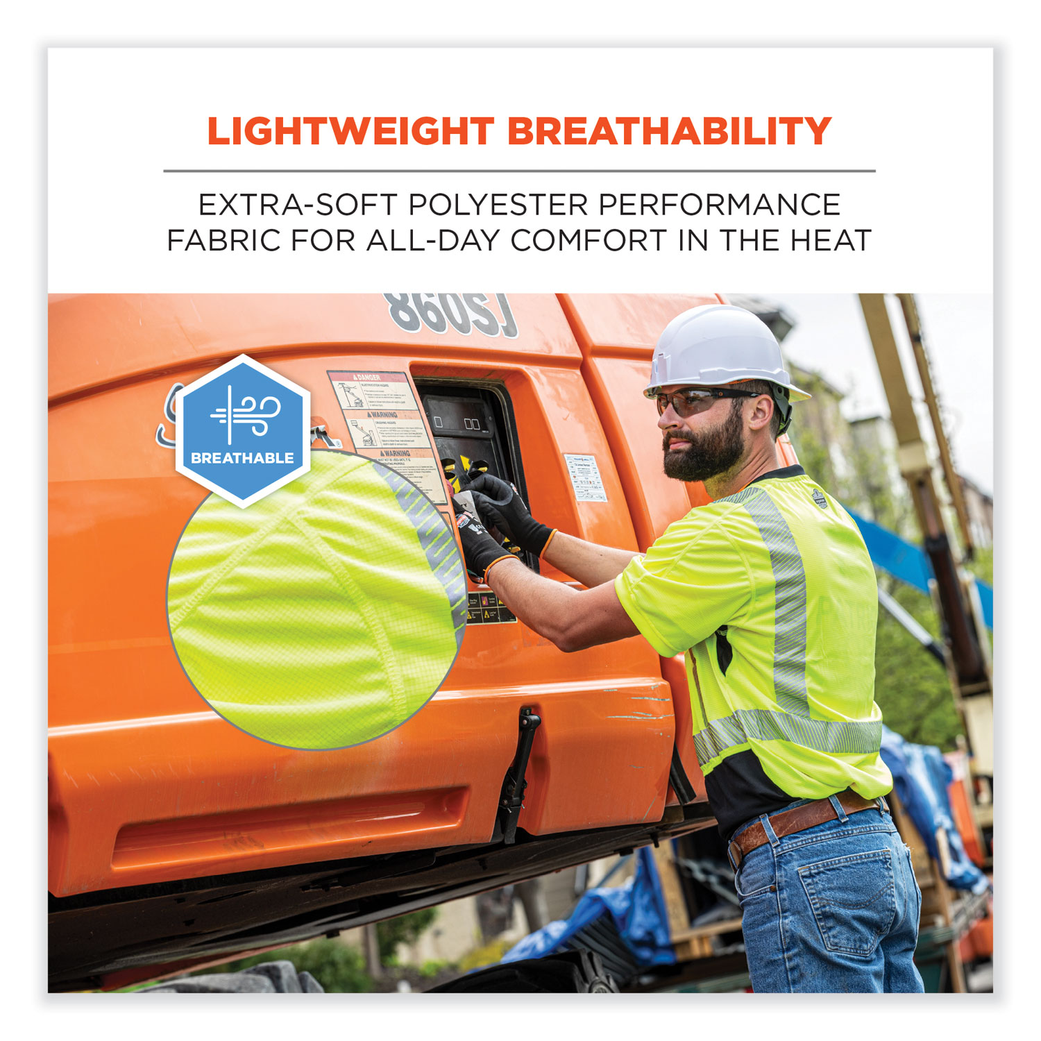 The GloWear 8283BK Lightweight Performance Hi-Vis T-Shirt is a Type R Class 2 shirt designed for enhanced visibility and breathable comfort. With an extra soft, jersey-like feel, this 100% polyester fabric is the lightest weight ANSI 107-approved fabric on the market. Great for working in the heat, this reflective safety shirt features a moisture-wicking treatment and underarm vents to keep wearers cool and dry. It is rated to 30+ UPF for protection against the sun's harmful UV rays. The black panel across the bottom hides dirt, grit and dust to keep the shirt looking cleaner longer. Additionally, black vented underarm panels hide sweat and improve breathability. This hi-vis work shirt uses segmented 2" reflective tape for enhanced visibility at night or in low-light conditions. Unlike solid reflective tape, the flexibility of segmented tape allows reflective clothing to feel more comfortable, lightweight and breathable. Apparel Type: Hi-Vis Shirt; Material(s): Polyester; Color(s): Lime; Color Family: Green.