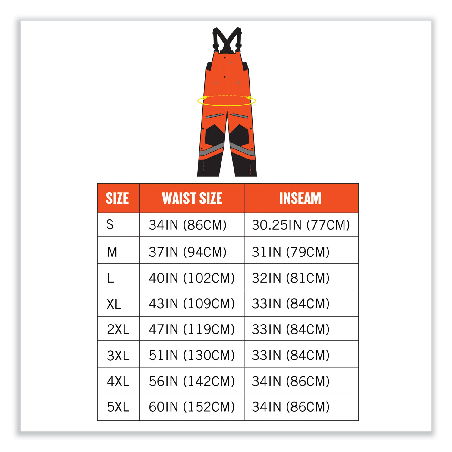 GloWear 8928 Hi-Vis Insulated Bibs provide ANSI 107-compliant warmth and durability in the toughest conditions. Windproof and water-resistant 300D polyester oxford with PU coating protects from the elements without compromising breathability or comfort. Built for long-lasting durability, these insulated bib overalls feature rugged scuff-resistant knee patches and dirt-hiding black accents. A heavy-duty front zipper closure, quick-release suspender buckles, comfortable elastic stretch sides and zippered pant legs make for easy on/off without removing boots. Adjustable suspenders allow workers to get the perfect fit. These hi-vis insulated bibs have one chest pocket and two side pockets, all with zipper closures for added security. ANSI 107 Class E compliant with reflective tape for enhanced low-light visibility. These insulated coveralls are ideal for those working in road construction, transportation, baggage handling, municipalities or around moving vehicles. Apparel Type: Hi-Vis Bibs; Material(s): Polyester; Color(s): Orange; Color Family: Orange.