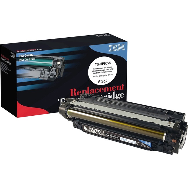 Toner cartridge is designed for use with the HP Color LaserJet Enterprise M552 and M553. High-quality alternative is IBM Certified Quality. Remanufactured cartridge offers OEM-equivalent image quality and page yield. Cartridge yields approximately 12,500 pages.
