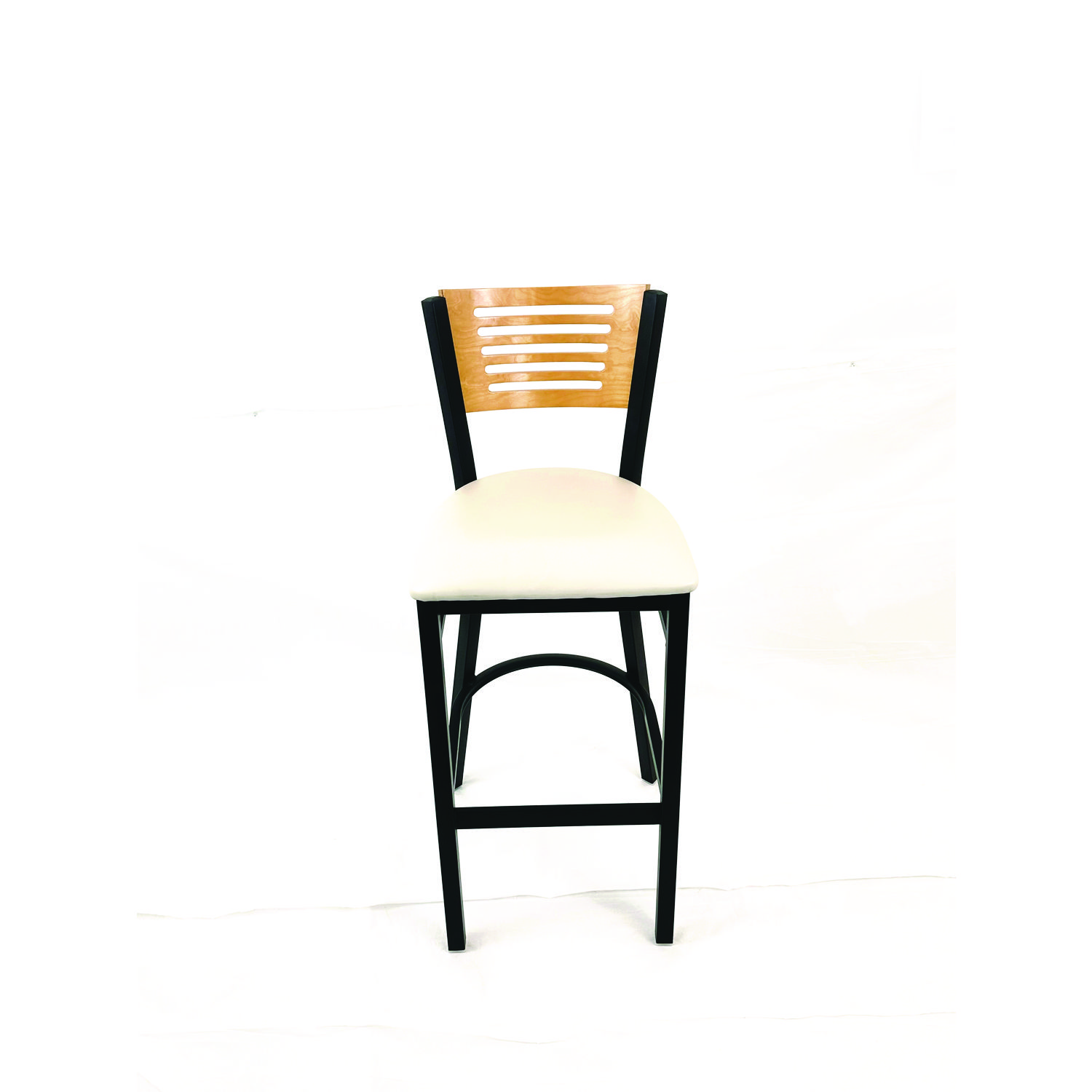 Introducing the perfect seating solution for your home or business-the Jones River Series metal framed barstool with vinyl seat pad. This sleek and modern design is built to provide maximum comfort and durability, all while adding a touch of style to your space. With a sturdy metal frame, this barstool is sure to stand up to even the busiest of environments. The frame is built to last, ensuring that you have a reliable seating option for years to come. The vinyl seat pad is not only comfortable, but also easy to clean and provides a soft and supportive surface that is perfect for extended use making it ideal for high-traffic areas. Whether you're using this barstool in your dining room, kitchen, or bar area, it's sure to impress and is the perfect addition to any indoor space. Recommended Application Area(s): Breakroom & Foodservice; Seat Color: Cream; Back Color: Natural; Color Family: Beige.