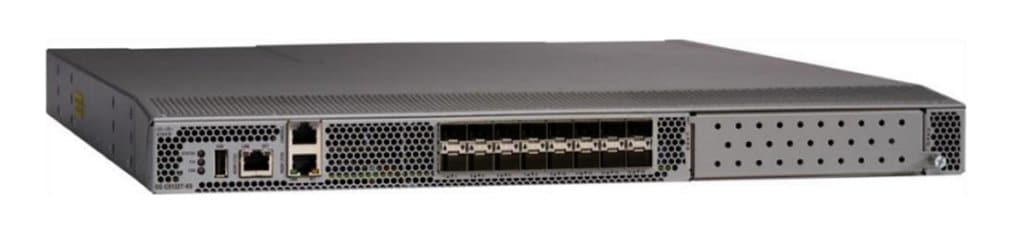 The next-generation Cisco® MDS 9132T 32-Gbps 32-Port Fibre Channel Switch (Figure 1) provides high-speed Fibre Channel connectivity from the server rack to the SAN core. It empowers small, midsize, and large enterprises that are rapidly deploying cloud-scale applications using extremely dense virtualized servers, providing the dual benefits of greater bandwidth and consolidation. Small-scale SAN architectures can be built from the foundation using this low-cost, low-power, non-blocking, line-rate, and low-latency, bi-directional airflow capable, fixed standalone SAN switch connecting both storage and host ports. Medium-size to large-scale SAN architectures built with SAN core directors can expand 32-Gbps connectivity to the server rack using these switches either in switch mode or Network Port Virtualization (NPV) mode. Additionally, investing in this switch for the lower-speed (4- or 8- or 16-Gbps) server rack gives you the option to upgrade to 32-Gbps server connectivity in the future using the 32-Gbps Host Bus Adapter (HBA) that are available today. The Cisco® MDS 9132T 32-Gbps 32-Port Fibre Channel switch also provides unmatched flexibility through a unique port expansion module (Figure 2) that provides a robust cost-effective, field swappable, port upgrade option. This switch also offers state-of-the-art SAN analytics and telemetry capabilities that have been built into this next-generation hardware platform. This new state-of-the-art technology couples the next-generation port ASIC with a fully dedicated Network Processing Unit designed to complete analytics calculations in real time. The telemetry data extracted from the inspection of the frame headers are calculated on board (within the switch) and, using an industry-leading open format, can be streamed to any analytics-visualization platform. This switch also includes a dedicated 10/100/1000BASE-T telemetry port to maximize data delivery to any telemetry receiver including Cisco Data Center Network Manager.