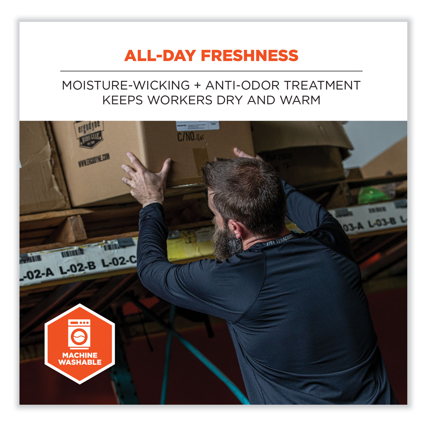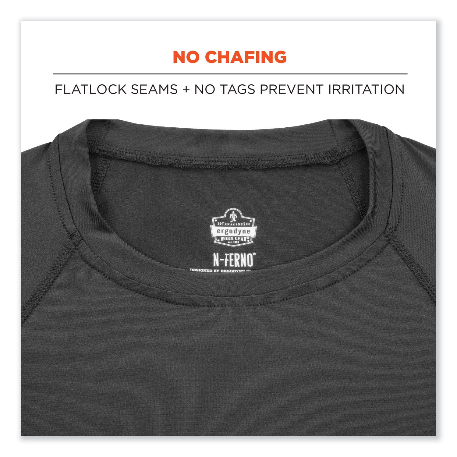 The N-Ferno 6436 Long Sleeve Lightweight Base Layer Shirt is designed for comfortable warmth in mild to cold conditions. Made with lightweight and breathable stretch fabric, it is a great base layer shirt for keeping workers warm without overheating during strenuous activity. The 180 g polyester-spandex performance material provides warmth without the constricting or bulky feel often found with heavyweight base layers. The fabric is smooth and stretchable for easily layering under sweatshirts and jackets, plus a long tail for full coverage. Unlike other base layers, this shirt is designed to sit slightly looser on the skin to enhance breathability and mobility while also providing an air gap for additional insulation. Raglan sleeves with wider underarms also make for full range of motion. Featuring moisture-wicking technology and an anti-odor treatment to keep workers comfortably fresh, dry and warm all day. Apparel Type: Work Shirt; Material(s): Polyester; Spandex; Color(s): Black; Color Family: Black.