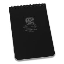 All-Weather Wire-O Notepad, Universal: Narrow Rule and Quadrille Rule, Black Cover, 50 White 3 x 5 Sheets