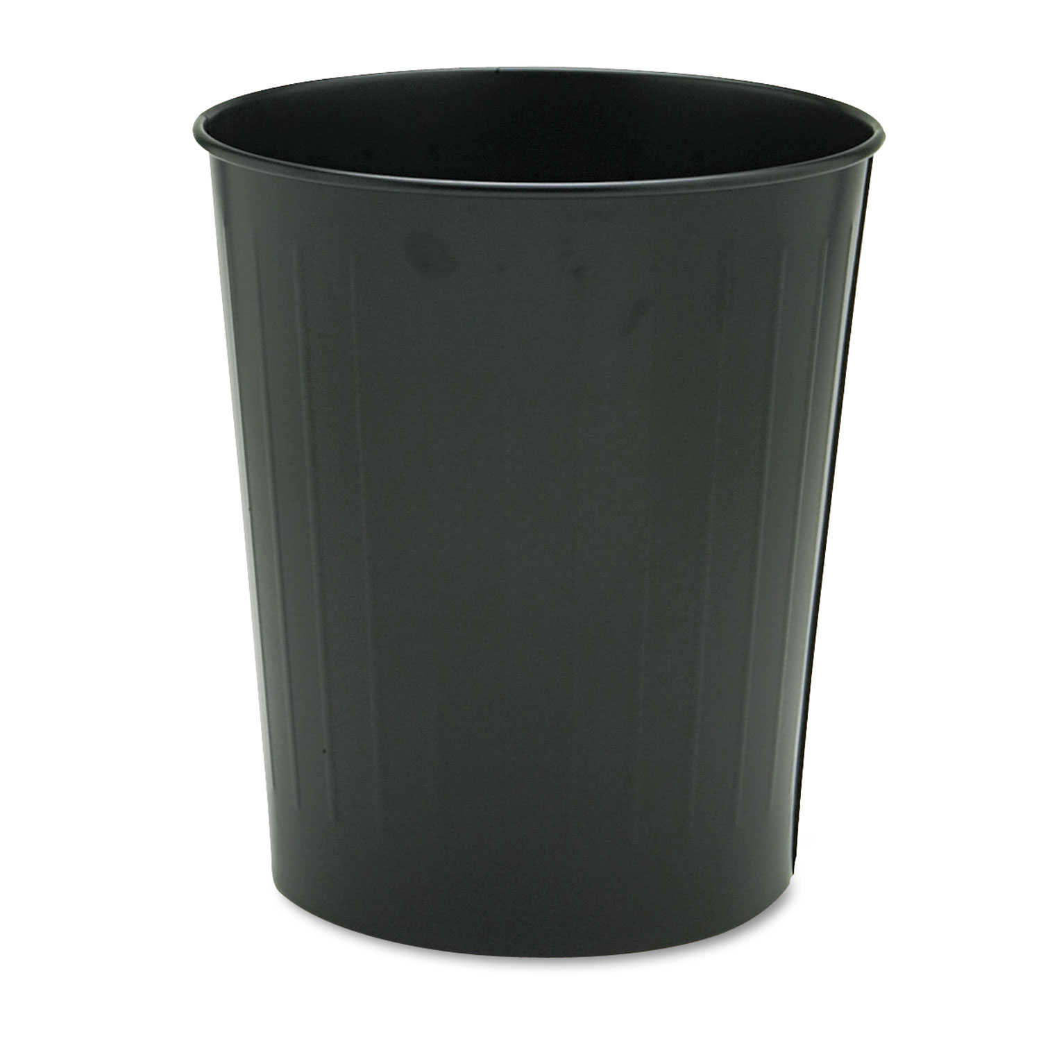 Durable receptacle is a workplace essential. Puncture-resistant, solid steel construction with ribbed braces and a rolled-wire rim for added strength. Powder coat finish for durability. Raised bottom may help prevent can-to-floor heat transfer.