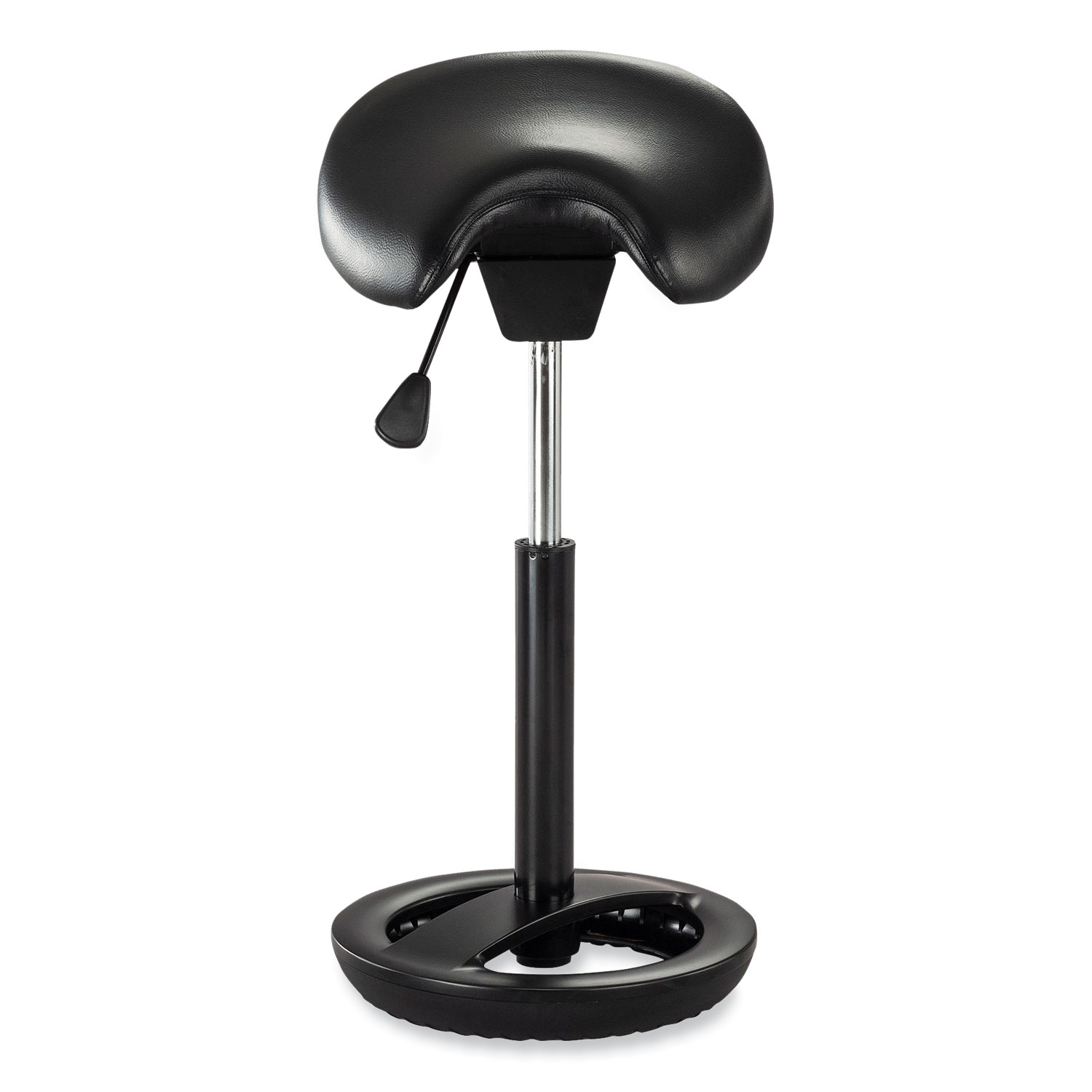 Twixt® Saddle Seat Stool features a saddle seat that helps to keep the hips engaged, encourages better posture and may allow better breathing from the diaphragm. Flexible ring under the base allows user to adjust angle of sit for increased comfort during use. The seat also tilts independently of the base, creating another axis of movement. Seat is made from easy-to-clean vinyl and stool features a 360-degree swivel and a 300 lb weight capacity. Part of the Active Collection. Designed by Thomas Walser. Recommended Application Area(s): Assembly/Repair & Technical Task; General Office & Task; Seat Color: Black; Color Family: Black; Arms Included: No.