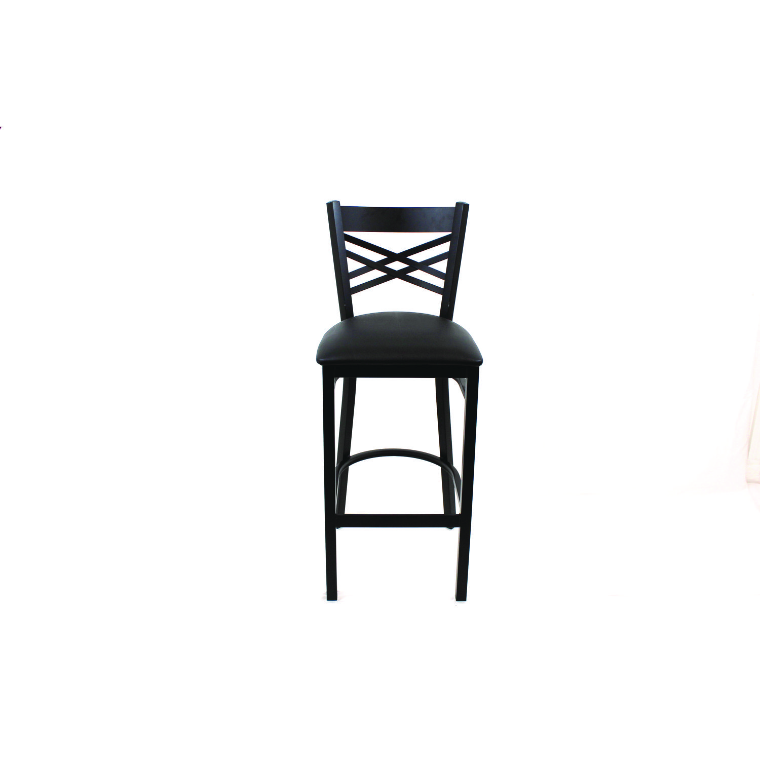 Introducing the perfect seating solution for your home or business-the X Series metal framed barstool with vinyl seat pad. This sleek and modern design is built to provide maximum comfort and durability, all while adding a touch of style to your space. With a sturdy metal frame, this barstool is sure to stand up to even the busiest of environments. The frame is built to last, ensuring that you have a reliable seating option for years to come. The vinyl seat pad is not only comfortable, but also easy to clean and provides a soft and supportive surface that is perfect for extended use making it ideal for high-traffic areas. Whether you're using this barstool in your dining room, kitchen, or bar area, it's sure to impress and is the perfect addition to any indoor space. Recommended Application Area(s): Breakroom & Foodservice; Seat Color: Black; Back Color: Black; Color Family: Black.
