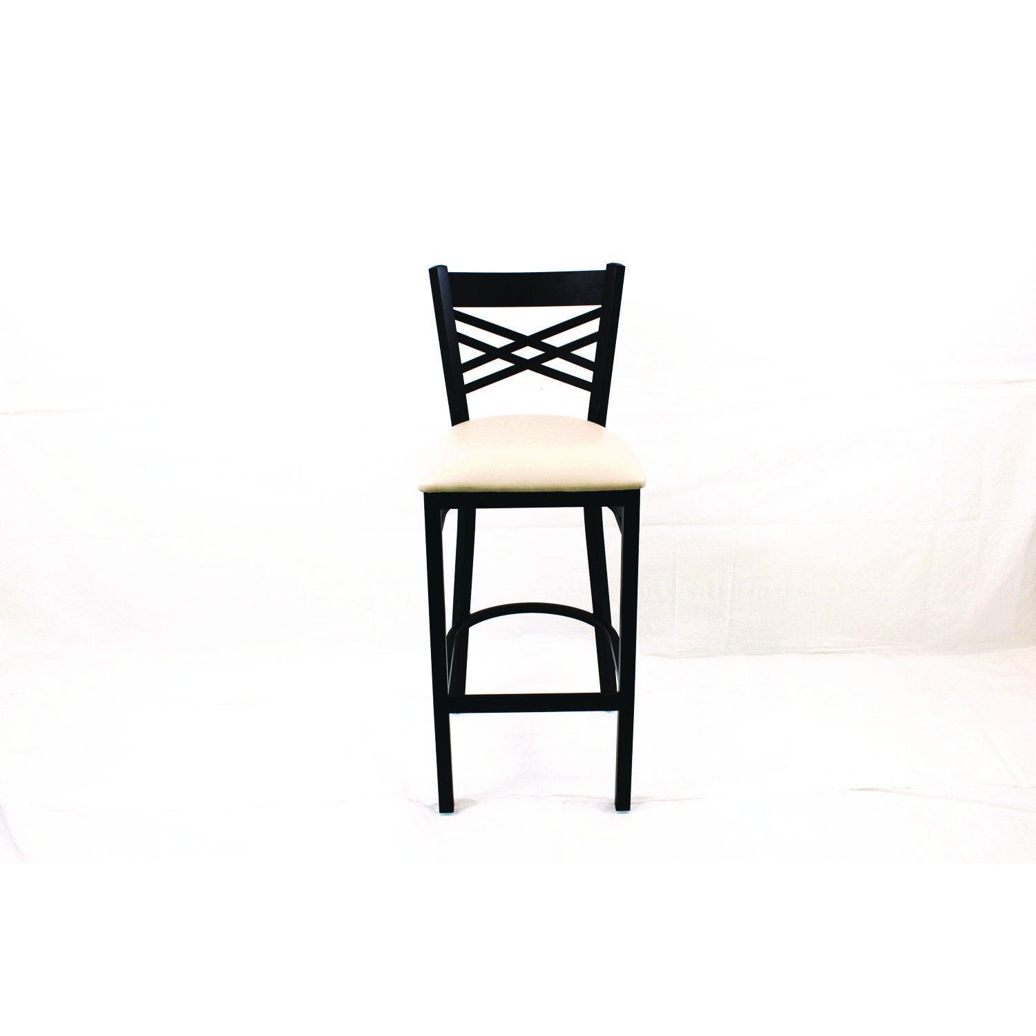 Introducing the perfect seating solution for your home or business-the X Series metal framed barstool with vinyl seat pad. This sleek and modern design is built to provide maximum comfort and durability, all while adding a touch of style to your space. With a sturdy metal frame, this barstool is sure to stand up to even the busiest of environments. The frame is built to last, ensuring that you have a reliable seating option for years to come. The vinyl seat pad is not only comfortable, but also easy to clean and provides a soft and supportive surface that is perfect for extended use making it ideal for high-traffic areas. Whether you're using this barstool in your dining room, kitchen, or bar area, it's sure to impress and is the perfect addition to any indoor space. Recommended Application Area(s): Breakroom & Foodservice; Seat Color: Cream; Back Color: Black; Color Family: Beige.